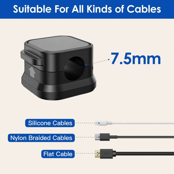 - *Suitable For All Cables*: This magnetic cord holder is suitable for cords with a diameter of less than 7.5mm,which can accommodate a range of different types and sizes of charging cables.
